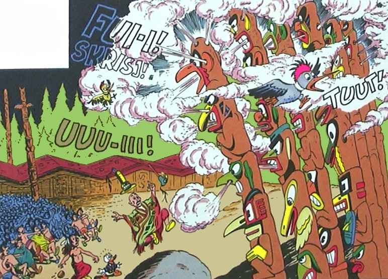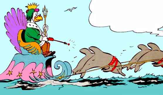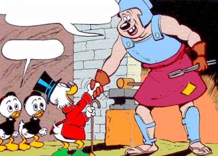 This is a page about Carl Barks' graphical renderings or mentionings of Gods and Demigods* in his stories from the duck universe. It is somewhat surprising to learn how often Barks in fact referred to deities in a variety of ways considering that such beings are more prone to interest adults than the children that were supposed to be the main audience for funny animal comic book stories at the time. And, of course, many of the references must have gone over the readers' heads. Still, Barks managed to make many of his most memorable stories using deities as important role-players.