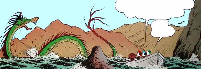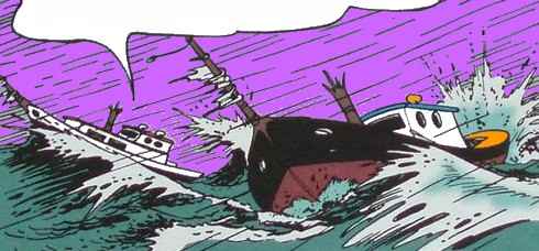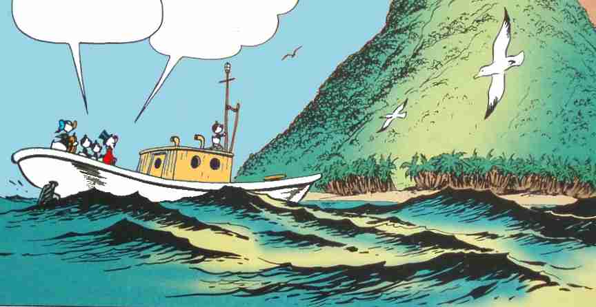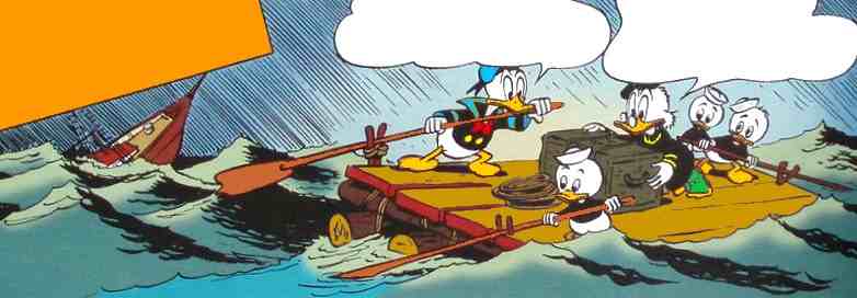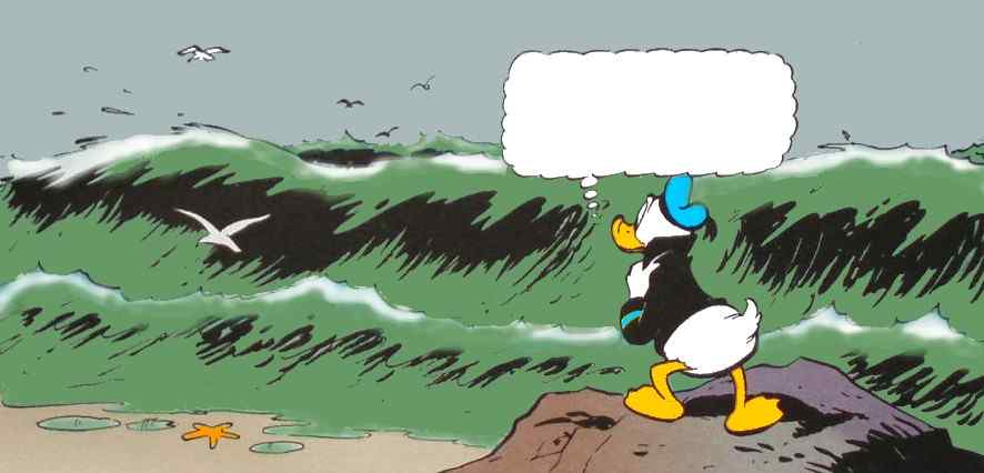 From the great number of ocean stories only 10 panels - all panoramic - have been selected as representative of the chosen stories. If the subject tickles your imagination as it did Barks' you should browse the entire stories yourself to enjoy the many impressive and awesome wave panels and the atmosphere they add.
