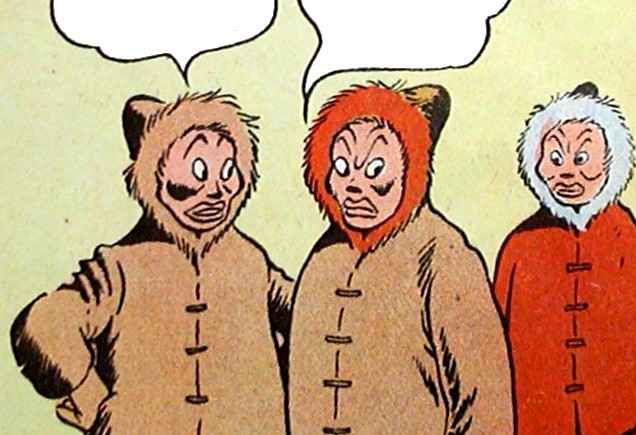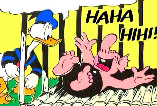 This is a page about Amerinds*. It is in fact quite amazing to learn how often Carl Barks actually drew Indians in his duck stories. Sometimes they merely served as background, but many times they played active parts in the plots. Not only that, he introduced us to a broad variety of them - genuine ones such as Incas, invented ones such as Peewees, and fake ones such as the ducks in various disguises. This page gives you examples - only one from the individual stories - of Barks' great versatility when it came to portraying many different types of Amerinds.