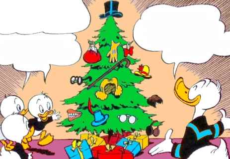 Barks only made 8 one-pagers about Christmas despite the vast potential for portraying, especially, Donald and the nephews in various holiday situations - and he only did it within the first few years. However, his few gag pages are all very inventive with surprising punch lines, far from traditionally expected standard jokes.