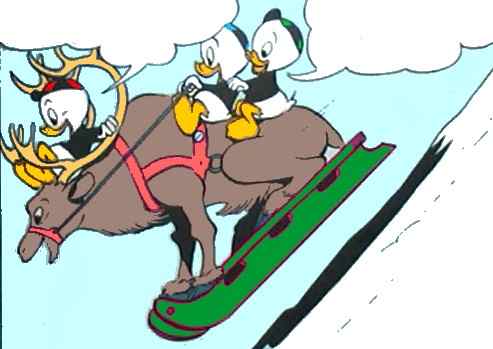 ![]() 1958 WDCS208 'Roscoe the Reindeer' The nephews are having fun with their sled in the snowy hills but it is tiresome to drag the sled upwards. Luckily, Gladstone has a reindeer... |