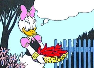 | Daisy is a female version of Donald and as such she is blessed with every bit a furious a temper as her boyfriend. But there is more to her than meets the eye. Although she has all the cultural stereotypes of women (poor driving abilities, house cleaning, cooking, and so forth) she is also very sophisticated. Here are some more characteristics: | |||