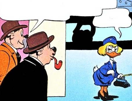 The sorceress Magica de Spell is easily the most changeable of Carl Barks' comic book characters in terms of sheer appearance. Despite her bombshellish demeanour that can turn everybody's head, she often changes her appearance in her attempts to reach her blackhearted goals. This is sometimes done by the use of old-fashioned disguises but more often by using magical transformation (after all, she is a sorceress). Although Magica only participated in 9 of Barks' stories she used her skills in this area on many occasions. This page studies Magica's transformation skills.