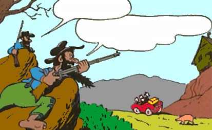 On their way to their holiday destination the Ducks are watched by some hillbillies resident to the Appalachia Mountains. |