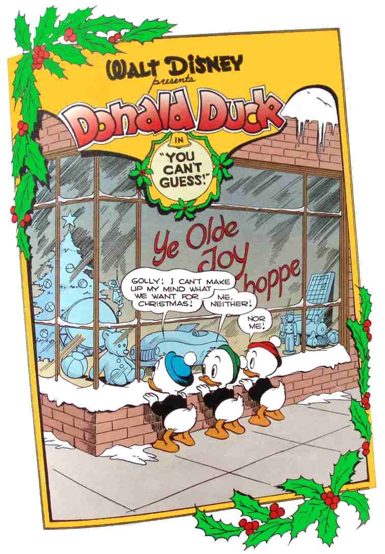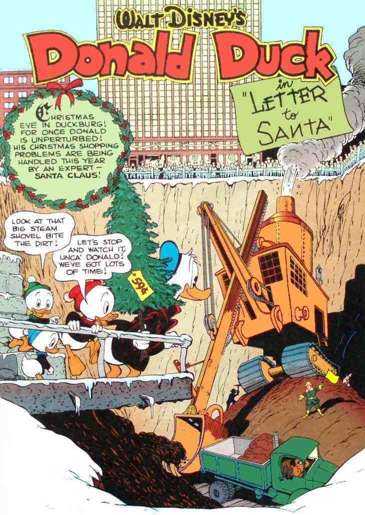 Means that an entire page consists of only one panel. A Splash Page is the first page in a story and must not be confused with a front cover. In his entire comic book career Barks only made three Splash Pages (for Christmas Parades Nos. 1 and 2, and Vacation Parade No. 1), and they are shown below.